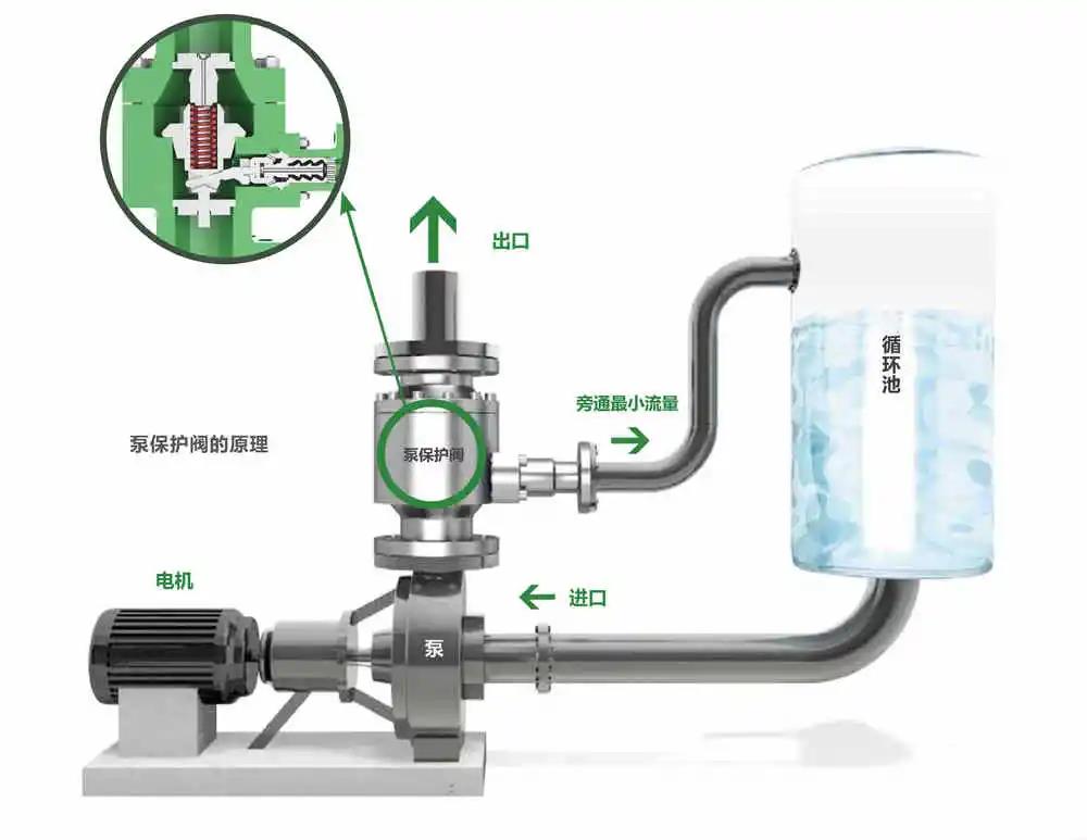 最小流量閥,也稱自動再循環閥三通回流閥泵保護閥或空排止回閥。是一種安裝在給水泵出口的泵保護閥,用于防止給水泵在低于負荷運行時,由于過熱、嚴重噪聲、不穩定和氣蝕而引起的損壞。只要給水泵的流量低于一定數值,閥的旁路回流口就會自動地打開,以此來保證液給水泵所必需的最小流量。